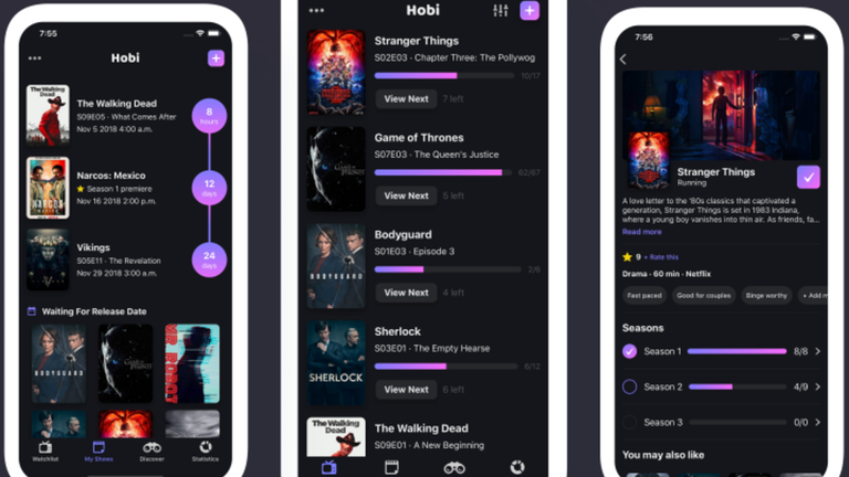 Esta aplicación, que resulta sensacional de utilizar, incluye compatibilidad con Trakt, que es la plataforma que te permitirá marcar los episodios vistos y que se puede utilizar para marcar contenido automaticamente si lo reproduces en Kodi, Plex o el propio Netflix. Su interfaz es preciosa, además de realmente útil, con pestañas para realizar un seguimiento de tus series, un calendario para descubrir el tiempo que queda hasta las siguientes temporadas o capítulos, con recomendaciones y con estadísticas.