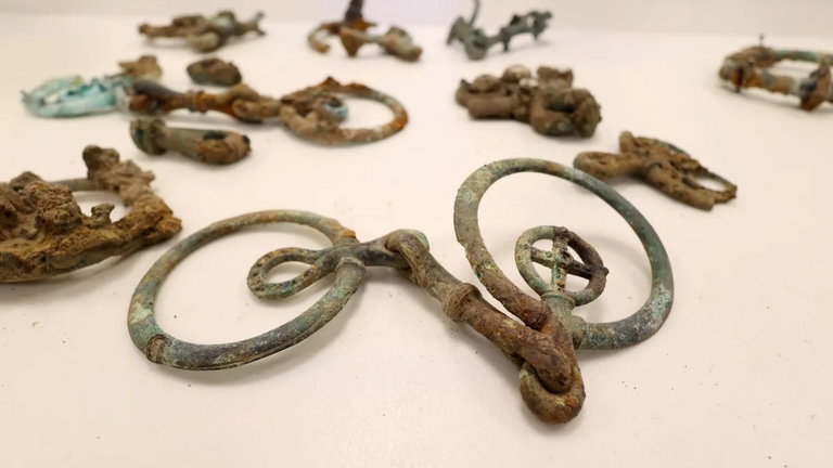 A escasos 25 metros de este primer conjunto, los arqueólogos localizaron un segundo "tesoro". En este caso, las lanzas y los componentes de arnés estaban fuertemente empaquetados. De este modo, todo apunta a que los responsables del enterramiento envolvieron el material en tejidos orgánicos antes de confiarlo a la tierra.